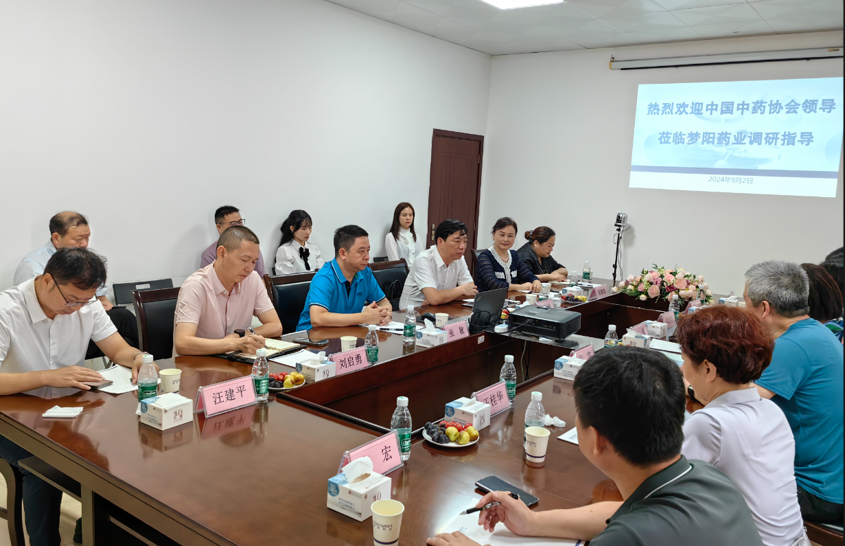 2024年9月2日,中國中藥協會常務副會長吳憲、秘書長王桂華、副秘書長申諾一行專程赴夢陽藥業調研企業生產經營及中藥行業發展情況。荊門市副市長陳實、掇刀區區長王瑋代表市區兩級政府歡迎協會領導一行,掇刀區政府黨組成員、副區長趙玉華陪同調研。