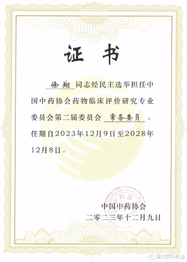 同時,會議期間召開了中國中藥協會藥物臨床評價研究專業委員會換屆會,夢陽藥業(上海)有限公司總經理徐翔當選中國中藥協會藥物臨床評價研究專業委員會第二屆委員會常務委員。