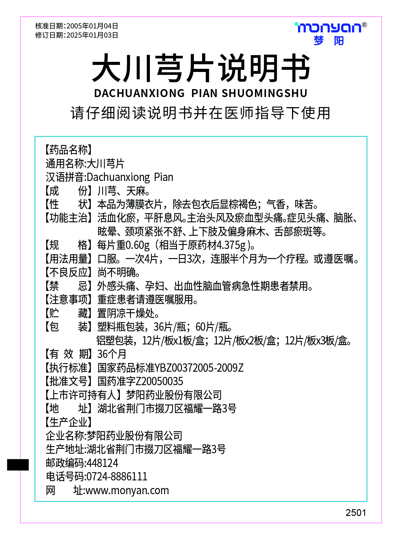 【執(zhí)行標(biāo)準(zhǔn)】國(guó)家藥品標(biāo)準(zhǔn)YBZ00372005-2009Z (批準(zhǔn)文號(hào)】國(guó)藥準(zhǔn)字Z20050035